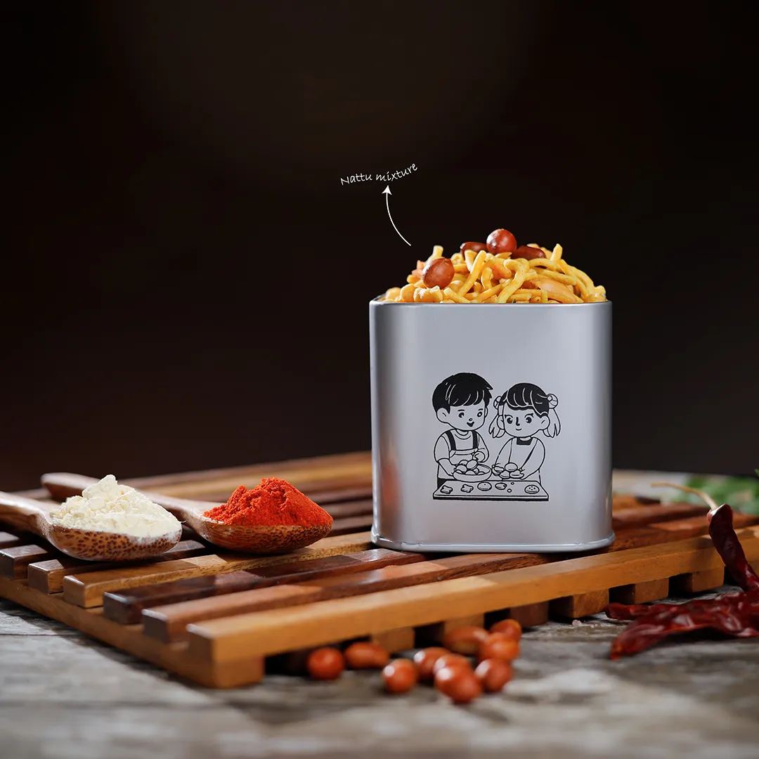 A crunchy and spicy blend of sev, boondi, roasted peanuts, dal, and curry leaves – Kerala’s signature mixture.